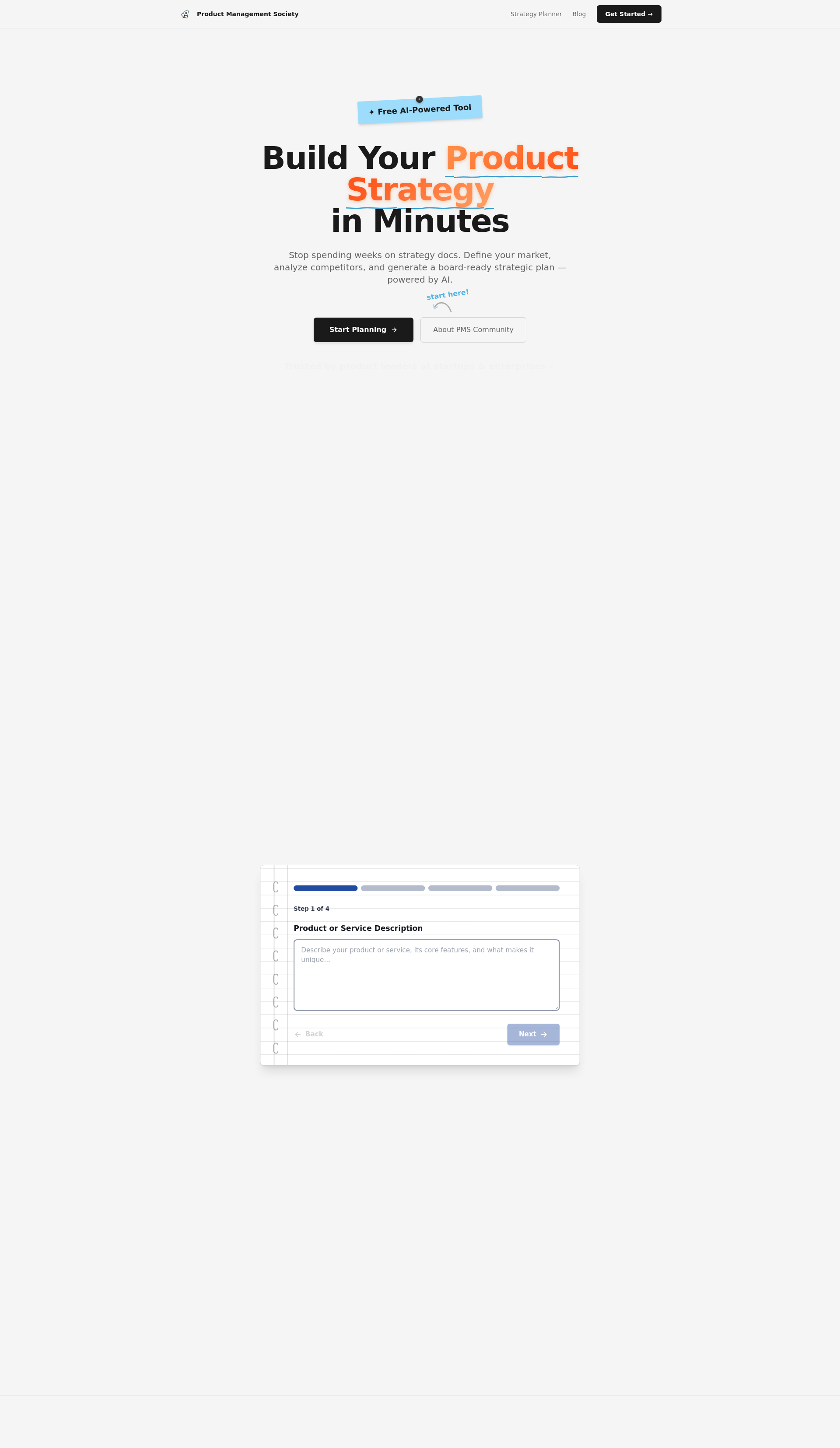 It’s for everyone! Whether you’re a startup founder sketching out your first product roadmap or a seasoned leader at a larger firm, this planner adjusts to your inputs. Startups might love how it helps clarify vision and competitive edges early on, while bigger teams can use it to refine focus or explore innovation. The AI tailors the output to whatever scale or industry you’re in—just be specific with your details for the best results.